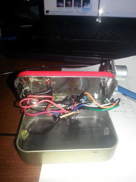 He soldado los cables de los LEDS a la tapa y caliente pegado en su lugar. El pulsador y el cable USB también estaban calientes pegadas en su lugar.