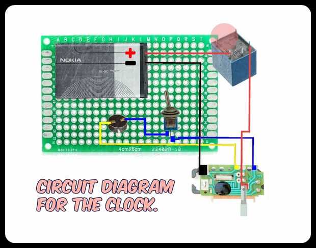 Este circuito debe ser fijada detrás del reloj después de ensamblar de nuevo, por lo que debe hacer el número suficiente de agujeros en la caja del reloj. el interruptor se añade lo que llenar completa la función, para oír el sonido de zumbido o no.