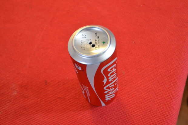 Tomar el poder y, con cuidado, hacer un agujero en la parte inferior de la misma con las tijeras. Deje que el gas sale y agrandar el agujero. Luego hacer un otro un agujero y hacer hacia fuera el líquido en un vaso. Se trata de un muy largo proceso asi que tengan paciencia.