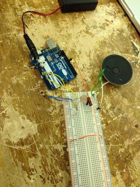 para más información y diagramas detallados, visita http://www.arduino.cc/en/Tutorial/Tone2 hoy.Calibre JaegerPaso 1: Haz un Arduino, protoboard, fotocélula y altavoz de 8 ohmios.Paso 2: La Asamblea de la tierra, en una resistencia de ohm de 4.7 k y