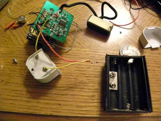 Después de quitar la AAA existente de soldar el alambre el compartimiento conduce, coloque las baterías de LR44 y compartimiento. Es importante cambiar la carcasa del AAA para la carcasa de la célula de botón como AAA toma demasiado espacio dentro de la bola de tenis. Como tienes las pilas que el mismo voltaje de salida como antes debe ser ok. Quitar tres 1.5v AAA baterías resultados en necesidad de tres 1.5v botón pilas. Usar el control remoto para comprobar que el dispositivo funciona.