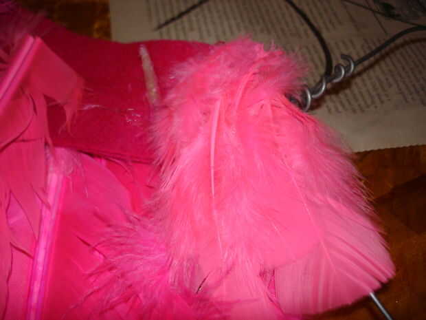 Cuando termine agregando las plumas de ganso, puede Agregar las plumas del penacho pequeño usando elmers pegamento a la parte superior de los tallos de pluma y los espacios entre las plumas de ganso para cubrir los "vacíos" donde muestra el fieltro a través. Esto también se agrega a la mirada "estandarte" del diseño. Este paso puede omitirse si no se adapta a su diseño, o se pueden sustituir la marabú u otros tipos de plumas para los penachos.