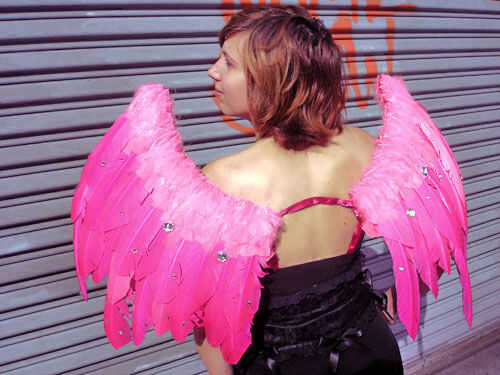Cortar el elástico en dos 18"" piezas. Éstos funcionarán como las correas de hombro para las alas. Sujete por atar por la mitad alrededor de la parte superior de la barra de medio y luego atando otra vez alrededor de los hombros. Las correas elásticas deben deslizarse dentro y fuera como una mochila. Puede utilizar claro elástico para hacer las correas menos visible, o si quieres algo más decorativo de la cinta.