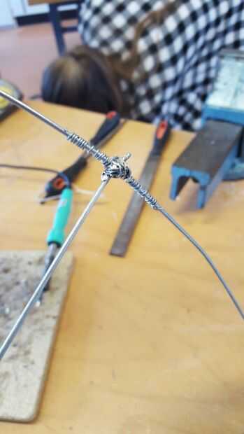 Para hacer la forma de las alas que han usado hierro gruesas y delgadas. Para la forma de las alas tienes que utilizar el alambre de hierro grueso. Y para unir las piezas entre sí, hemos utilizado el alambre de hierro delgado. Encender la plancha delgada alrededor de un compromiso a eso él wil ser pegadas. Pero porque esto no seguía siendo estancada, también tuvimos que soldar las piezas de alambre de hierro grueso para adjuntarlos.