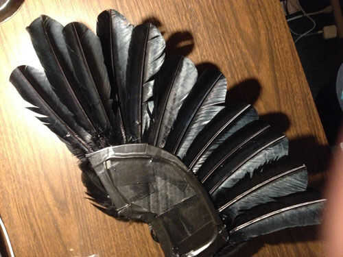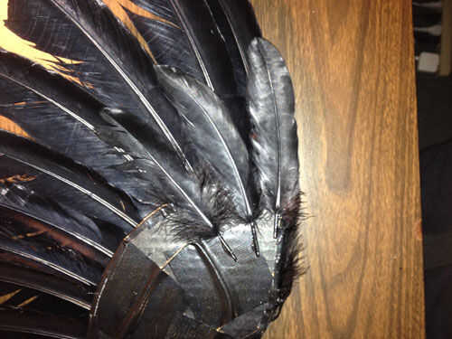Con la parte inferior de las alas lo hice más de un punto de alternar las hileras de plumas (ver segunda foto) para asegurar una cobertura máxima.