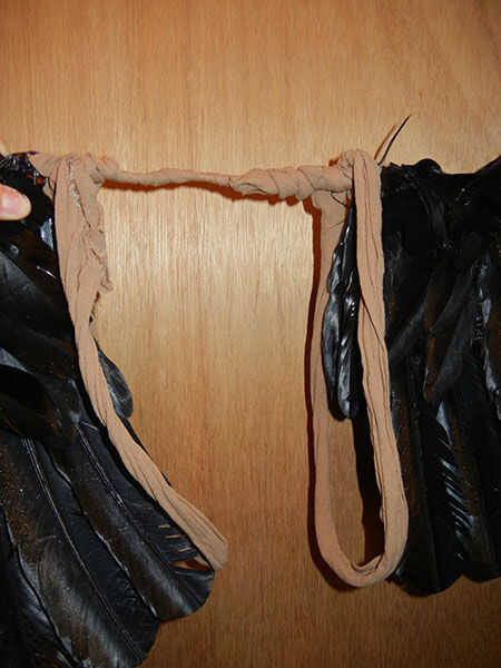 • Nudo, coser o caliente pegamento un extremo de una pierna apretada al lado del ala. Repita con la otra pierna en el otro extremo.