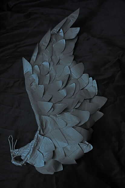 Más tarde os adjunto ambas alas a un arnés puse hizo con tela metálica, espuma y una correa para mi disfraz de Halloween, aunque lamentablemente yo nunca consiguió alrededor a tomar fotos del proyecto terminado.