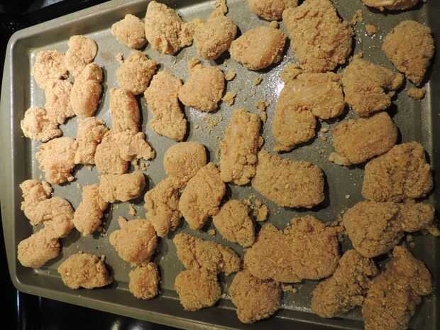 Capa de hojas para hornear con spray de cocina y extienda el pollo cubierto. Rocíe la parte superior de las piezas con más cocinar. Hornear en un horno precalentado 400˚F para 10-15 minutos hasta que el pollo esté cocinado.