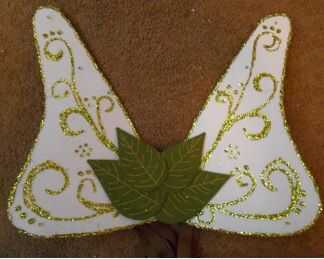 15. mientras que están dejando el último de la cola final de secado le puede hacer algunas hojas o algo para decorar el centro donde se une la cubierta. Esto no es necesario, pero al hacer esto que usted puede también atar el aspecto de las alas en el resto del traje mediante el uso de material usados en vestido. (Solo utilicé los restos de las alas y el material del vestido.)