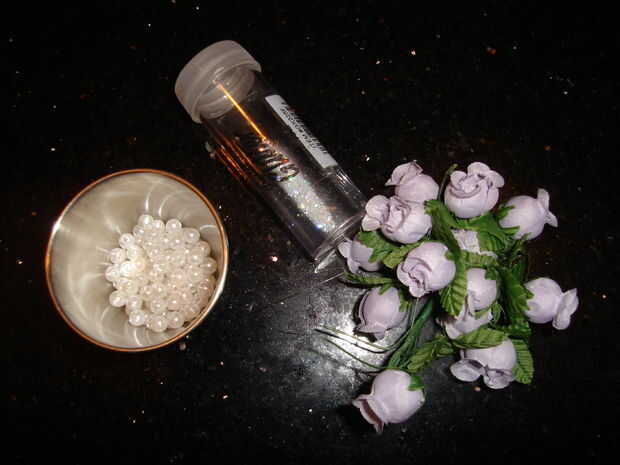 Después de pintar la tela de las alas, utilice los suministros se reunieron para cubrir los elementos de construcción de la articulación de las alas en el arnés. Pegué sobre algunas flores de tela, cosidas en algunas perlas de plástico y voy a poner alguna cinta a sobre la espalda de mi perro. Por supuesto, con algo como esto, brillo nunca es malo.