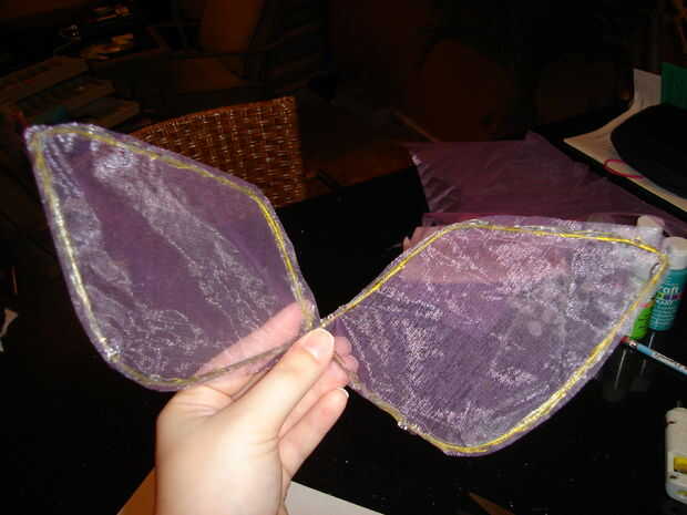 Sé que si observas las alas, se ven algo demacrados como se puede ver la cola a través de la tela y la suspensión también. Después de pintar y decorar las alas sin embargo, no podrás ver ninguna del esqueleto de la pieza.