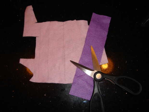 Marcar y cortar el fieltro y pone hacia fuera, cortar una pequeña tira para ir sobre la articulación de las alas. Usted puede marcar con un lápiz para mostrar donde todo pone hacia fuera si te siente todo le ayudará a ir sin problemas.
