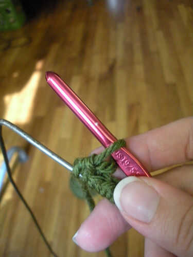 Cubrir todo el cable que está mostrando con crochets solo. No puedo darte un número exacto de scs, sólo cubrir ambas alas.