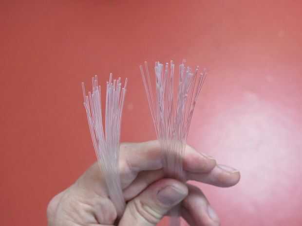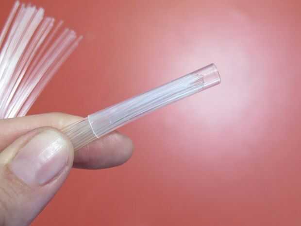 Cuando estén secas, corte el extremo de cada uno con un cuchillo afilado exacto, creando una superficie plana en el extremo de las fibras.