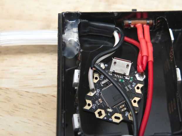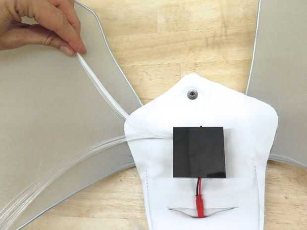 Fije su electrónica al ala base que se pega el cuadro en el cierre de velcro y deslizar la batería en el bolsillo en la piel por debajo de ella.