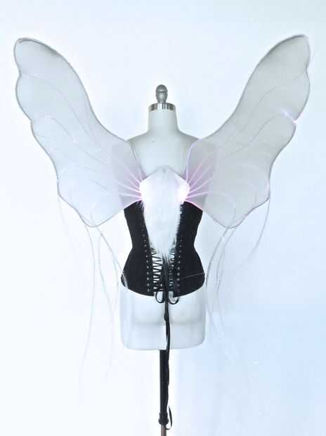Poner sus alas en forma de vestido, una persona, o circule hasta un lugar donde las fibras pueden colgar hacia abajo. Para colocar correctamente las alas a una persona o una forma de vestido para el uso de un corsé, poner el corsé sobre la persona, dejando la parte posterior del cordón suelto. Sin ajustar la capa de piel del ala base y deslizamiento y el cuero de la base hacia abajo detrás de los cordones del corsé hasta la parte inferior de las alas se encuentra justo en la parte superior del corsé. La capa de la piel hacia fuera a través de los cordones del hilo de rosca, apretar los cordones sobre la base de cuero, luego coloque la piel nuevamente en su lugar, que cubre los cordones y ala base.