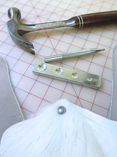 Luego coloque el extremo inferior de la pieza de piel en el extremo inferior de la base de cuero. Utilicé dos remaches de plata, pero podría también a mano o máquina de coser la piel para la piel.