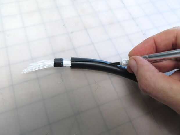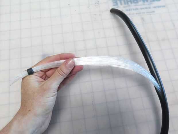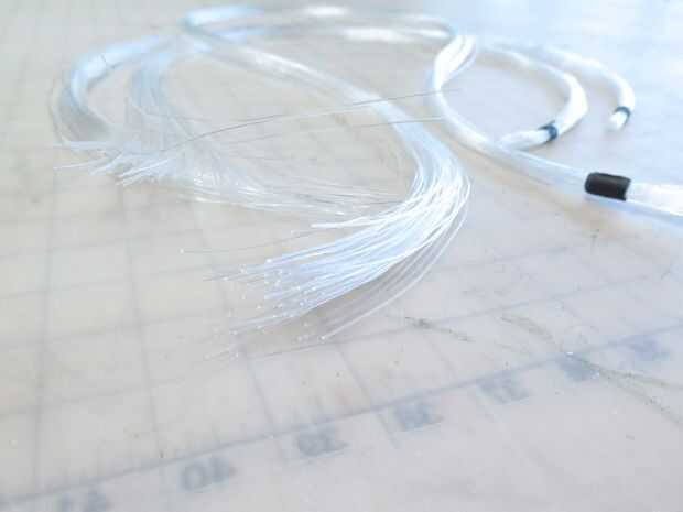 Con un gran par de cortadores de alambre, corte el cable de fibra óptica en una sección de cada una de estas tres longitudes: 30", 52" y 36"(que será ser dividir cada una de estas secciones en dos paquetes de la fibra para que tengas una para cada lado).