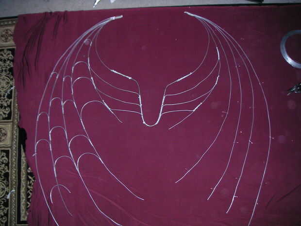 Después de conectar las espinas, cortar los pequeños para cada canto. Curva en forma y extienda el ala entera antes de colocar cualquiera de los cables.