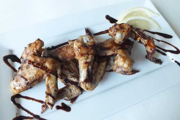 Alas son mi favorita de las familias, especialmente un el viernes o el sábado... perezoso estas alas tienen un bocado y son rociados con un café balsámico preparación que es dulce y oscuro misterioso.
