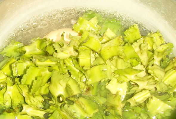Añadir al agua hirviendo para los últimos minutos (aproximadamente 3 para alas frijoles) así que está cocinadas.