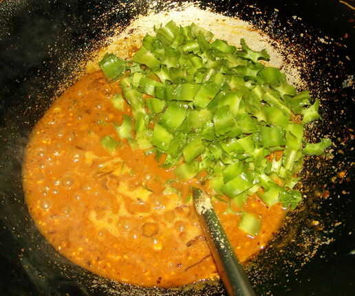 Agregue los cacahuetes machacados y tomar la salsa fuera del fuego.