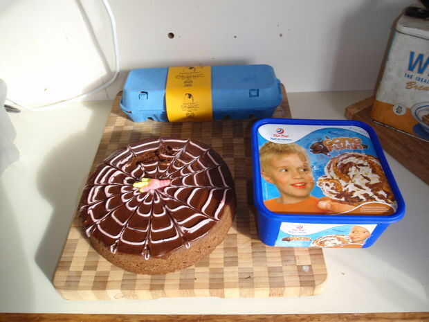 Tratar de encontrar un pastel que es aproximadamente la misma forma que su helado. Generalmente los supermercados hacen una esponja agradable de 8 "x 8", pero encontré esto alrededor de uno en especial y pensé que le daría un ir. Se permite recortar, sólo siempre y cuando el helado se adapta completamente en el pastel.