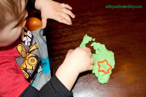 Retirar del fuego y volcar la masa sobre la superficie limpia y plana. Polvo de harina se que la masa no se pegue si es necesario. La masa estará caliente pero se refresca rápidamente. Amasar mientras se enfría, mezcla en verde y oro brillo polvo o arte de disco. Una vez que la masa esté completamente frío, guardar en una bolsa de ziplock selladas. Durará por meses!