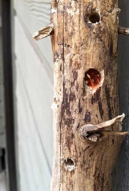 viste a y sus invitados la bienvenida! Escondida de hojas de té en alguno de los agujeros, hierbas y cosas fragantes que atraen a las abejas, agujas de pino, semillas de girasol, fibras de hilo y "materiales de construcción" y entonces perforado en un grano de madera rojizo apenas para la diversión de ella. es como ver que una cosa en su porche que significa eres hogar.