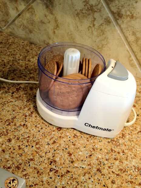 Poner las galletas en un procesador de alimentos para aplastarlos hasta que parecen polvo.