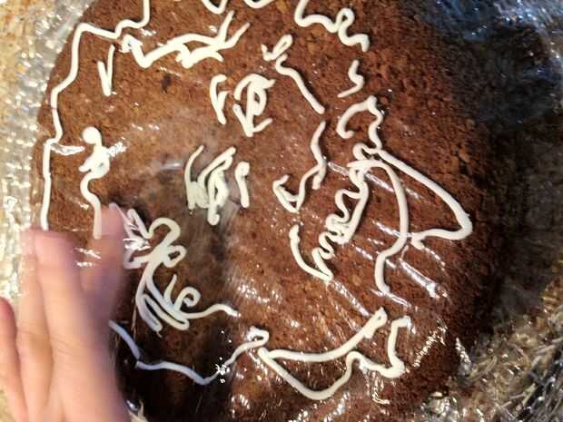 Cuando pones tu foto de helar encima de su pie, presione las líneas ligeramente con los dedos para transferir su picture.* no retire el envoltorio plástico de la tarta aún .
