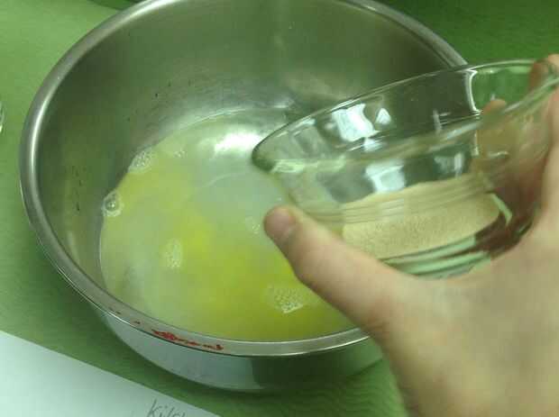 Combine todos los ingredientes para la masa, excepto la harina en un tazón grande y mezclar hasta combinar bien.