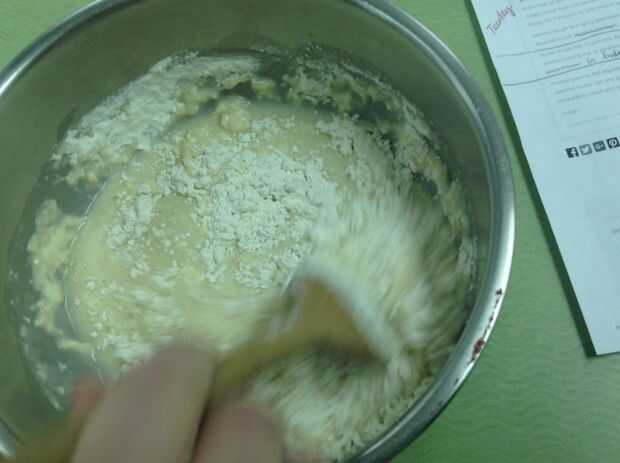 Revolver lentamente en pequeñas cantidades de harina a la vez.