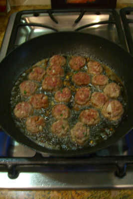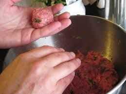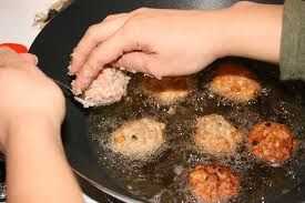 Después se mezclan todos los ingredientes, dejar en la nevera durante una hora sacar y darles forma en grandes bolas. Cuando están hechas todas las albóndigas, relleno en una sartén con aceite y freír hasta que doren y crujiente.