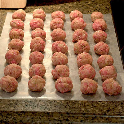 esta receta es para porciones de albóndigas. Si vas a hacer albóndigas, por qué alguien sólo tendría suficiente para una comida, cuando usted puede hacer lo suficiente para tres. Este lote de 21 albóndigas probablemente me dan cena de espaguetis y al