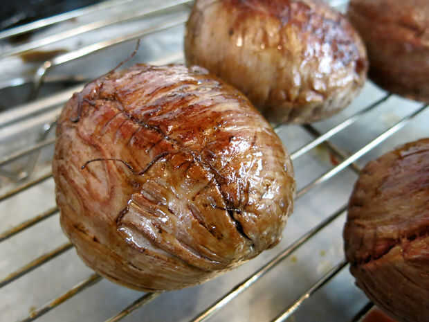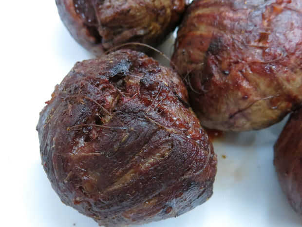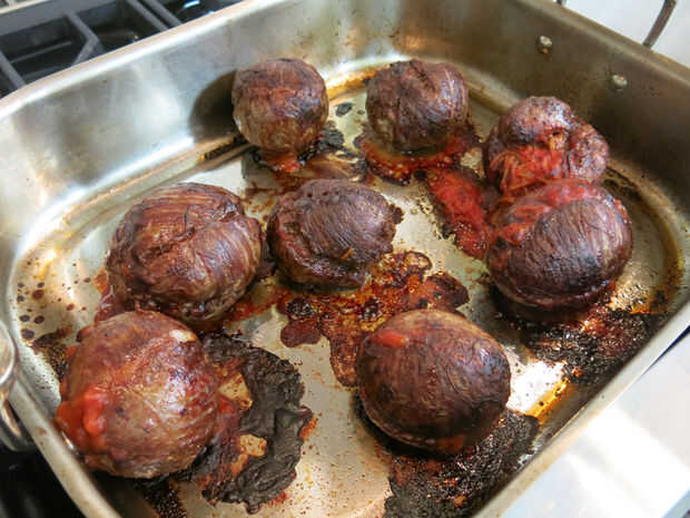 Mantener un ojo sobre las albóndigas y evaluar si se está completamente cocinado utilizando un termómetro de carne (la base debe ser por lo menos 60° C / 140° F recién sacadas del horno) o su propio criterio. Como se puede ver en mis fotos, algunas de mis albóndigas salieron un poco más crujiente de lo que quería.