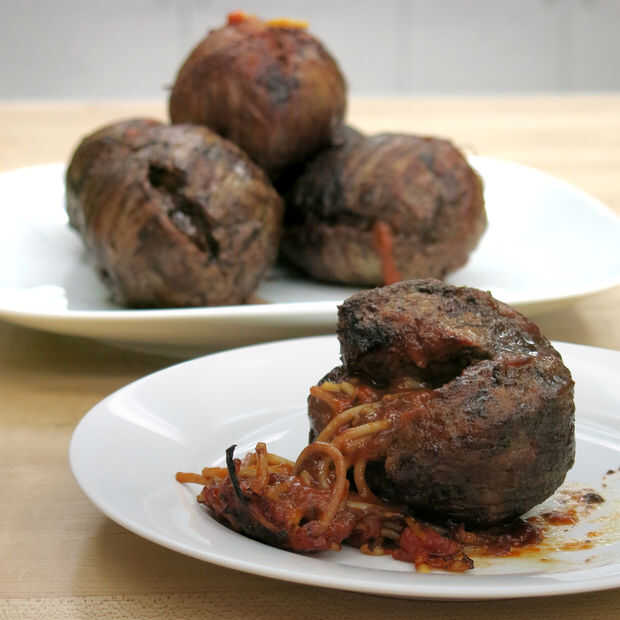 Servir como es, con una rebanada de pan o con pasta (cualquier tipo de pasta, bien excepto Lasaña :)).Paso 1: método Albóndigas400 g carne de molida (res o cerdo, lo que usted prefiere)1 huevo4 cucharadas generosas o medio cocido o totalmente cocido