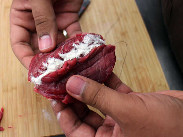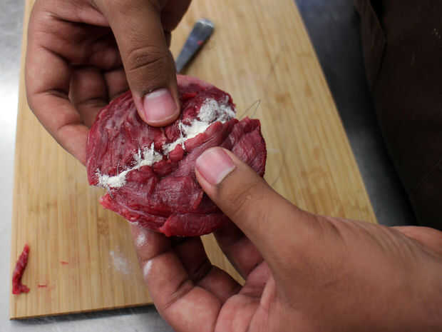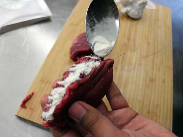Ahora sobre usted debe notar un olor espantoso y preguntándose si la carne ha empezado a pudrirse. No te preocupes: eso es sólo los vapores de amoníaco se producen por las enzimas, que descomponen la proteína de la carne. El olor se ido cuando que cocines tus albóndigas, lo prometo.
