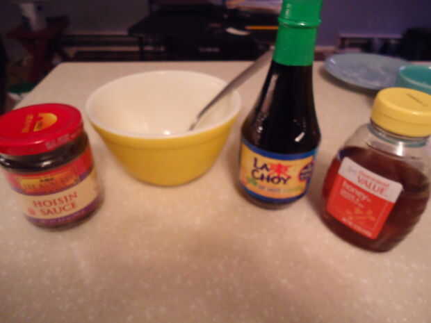Mientras que están cocinando sus bolas de masa hervida mezclar una proporción de 3:1 de salsa de soja con miel o comprar un frasco de salsa de hoisin para mojar.