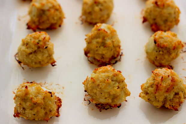 Notas de la receta: Utilicé las migas de pan panko que hacen las bolas de carne crujiente; al día siguiente no estaban crocantes en todos. Si quieres que tus bolas de carne para tener un color dorado en la parte superior, pincelar con aceite de oliva y asar durante unos 5-10 minutos. Mina tuvo unos 5 minutos en 375. También usé una cuchara para helado cucharada para formar mis bolas de carne. Asegúrese de que usted finalmente cortar la cebolla si no uso una pequeña. Soy un amante de ajo si no sólo uso un clavo. Si no tienes estas especias siempre puede utilizar una mezcla italiana condimentos funciona igual de bien.