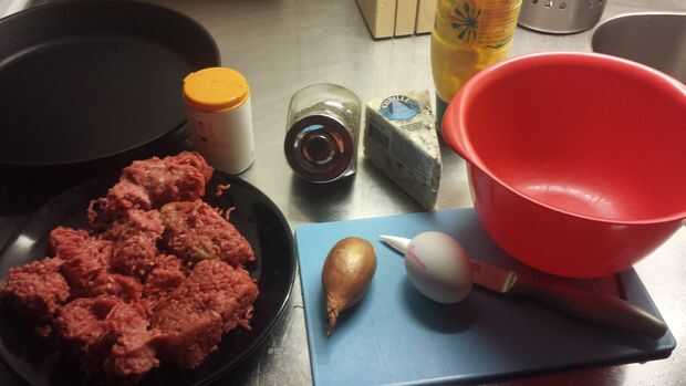 del derretimiento en la boca, bondad de ajo queso!!!!!!Paso 1: Lo que se necesita2 libras de pavo molido o hamburguesa7 tiras de tocino de pavo o tocino en rodajas gruesamigas de pan o 1 taza de avena normal2 huevos1/2 taza de cebolla rojaSemillas de