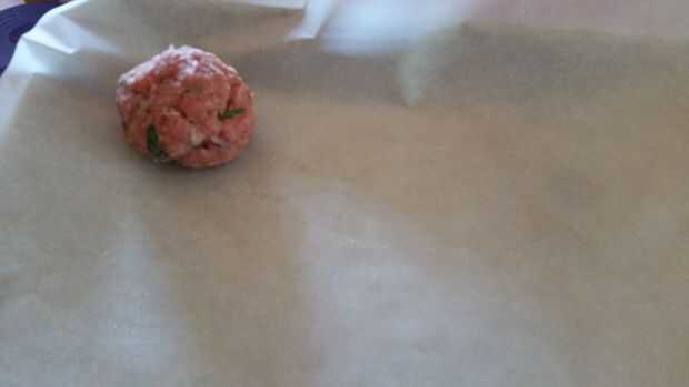 Usé mi cucharada dosificar 2 cucharadas para pequeñas albóndigas y 3 cucharadas de mesa para albóndigas medianas. Bolas del rodillo en esferas y colocarlos en una placa para horno con papel sulfurizado. Porque no ampliar como cookies usted no tiene que preocuparse de espacio hacia fuera. Pude conseguir 20 albóndigas medianas en una bandeja por vez o 25 pequeños.
