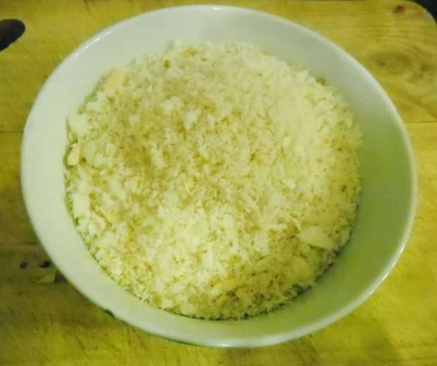 Mientras tanto, utilice una licuadora para girar el pan en migas de pan. Se puede utilizar a cualquier tipo de pan. Pan un poco duro funciona bien, por lo que es una gran manera de utilizar la izquierda sobre el pan.