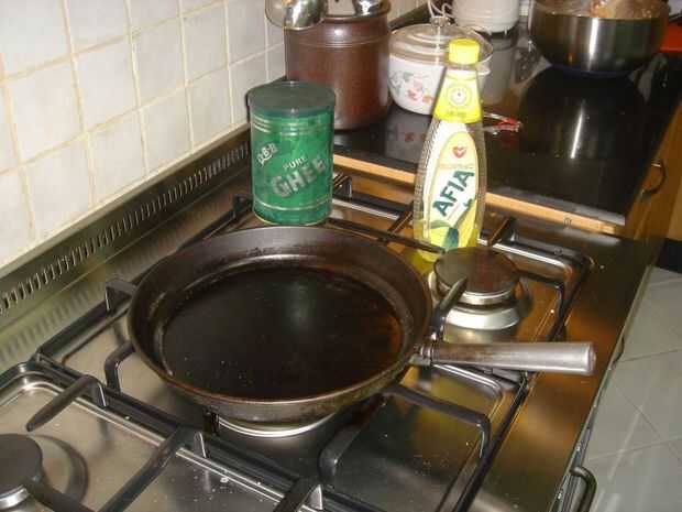 Prefiero a freír en una sartén de hierro fundido en vez de esas cosas no se pegue, creo que el pardeamiento de los alimentos es más rápido y más suave en una sartén de hierro fundido. Pero está bien para utilizar si no tienes la "cosa verdadera" ;-) una sartén de teflón