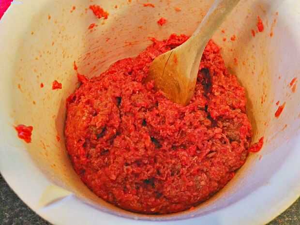 Otro delicioso plato de Indonesia se conoce como Sambal Goreng Printil. Puedes servir este plato como es, pero mejor es con arroz caliente.Paso 1: albóndigas carne de res magra 500 g1 huevoMezcla la carne con huevo y 1 cucharada pequeña (aproximadame