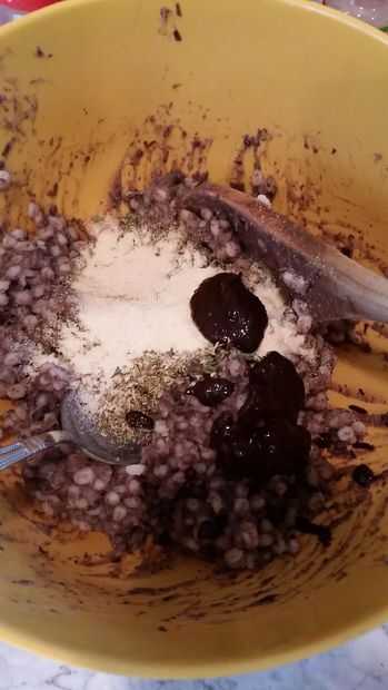 Una vez que se cocina la cebada y granos mezclan, mezclar todo junto en un tazón con una cuchara de madera o las manos. Usted probablemente querrá que la cebada se enfríe un poco antes de pegarse a las manos ahí aunque!