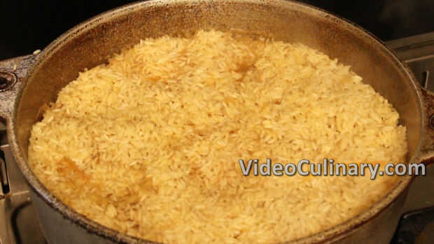 Escurrir el arroz en un colador, suavemente agregar el caldo y aplanar la superficie del arroz. Gire el calor alto, llevar a hervir y dejar que toda el agua se evapore.