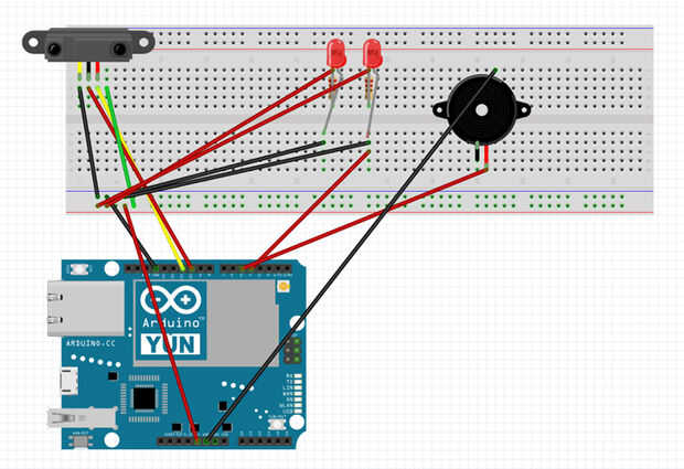 Nota: En el diagrama he utilizado un sensor de infrarrojos porque la biblioteca del programa (Fritzing) utilicé no tenía una imagen del sensor adecuado.