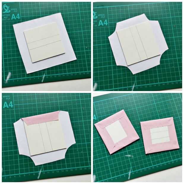 Aplicar el pegamento y doblar los otros 3 lados. Del mismo modo cubrir la espuma de otros