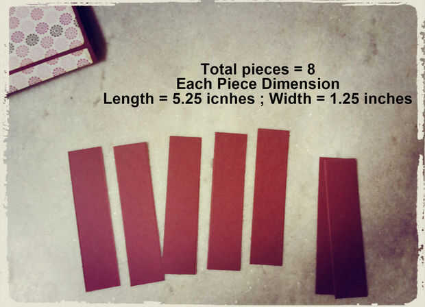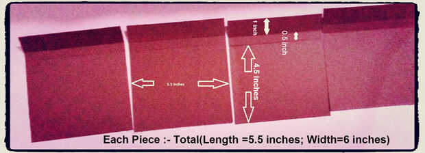 Una vez que las aletas son corte y anotó usted necesitará cortar 8 tiras de cartulina violeta para soportes de fotografías. La medición de los mismos será longitud = 5,25 pulgadas y anchura = 1,25 pulgadas.